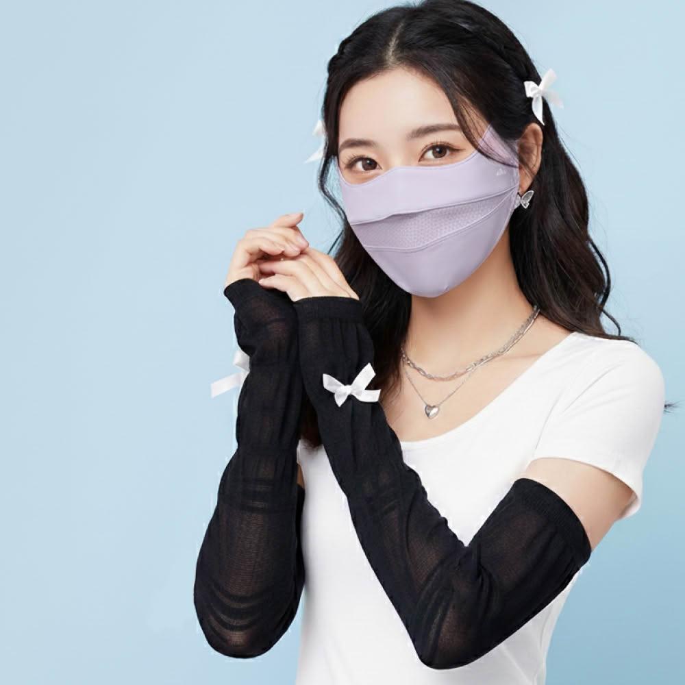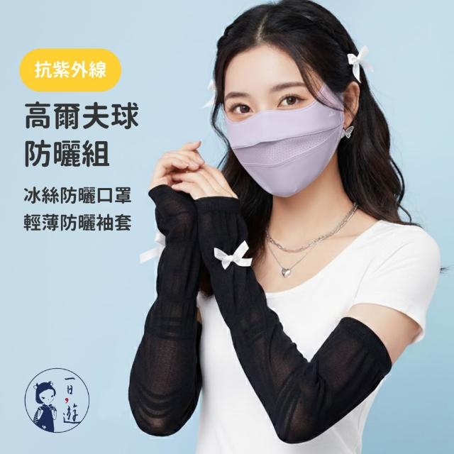 NicoFun 愛定做高爾夫球防曬組 冰絲防曬口罩 + Y2K蝴蝶結輕薄防曬袖套 遮陽(透氣 抗紫外線 可水洗)