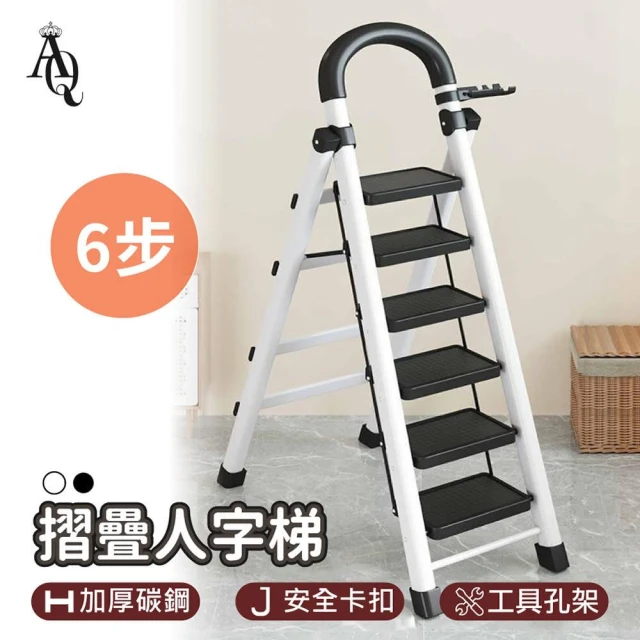 AI Queen安全扶手六步摺疊梯(工作梯/人字梯/工具梯/家用梯/維修梯/馬椅/爬梯/升降梯)
