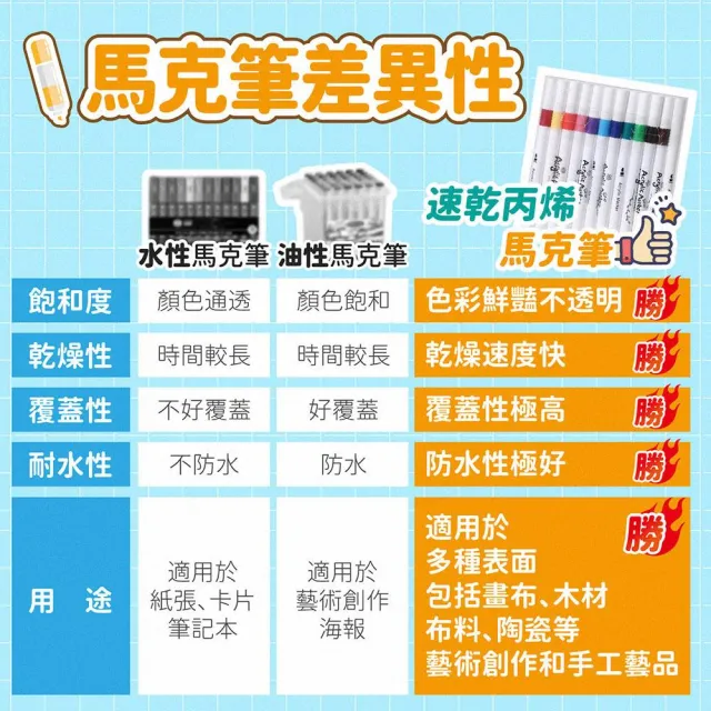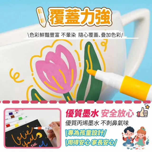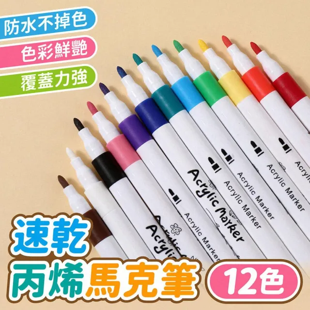AI Queen12色!速乾丙烯馬克筆(可疊色/彩繪筆/塗鴉筆/彩色筆/著色筆/螢光筆/繪畫筆/手帳筆)
