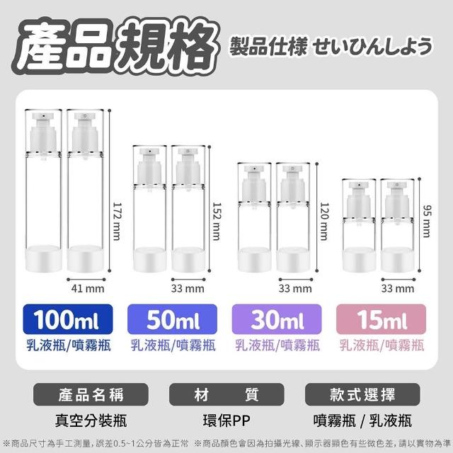AI Queen多種容量!真空分裝瓶(旅行分裝瓶/真空按壓瓶/乳液分裝瓶/旅行分裝罐/噴霧瓶/化妝水/乳液瓶