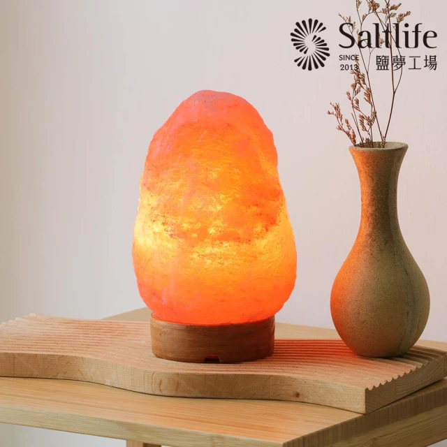 鹽夢工場玫瑰鹽燈 4-5kg |原木座原礦鹽燈|三段式保險絲電線