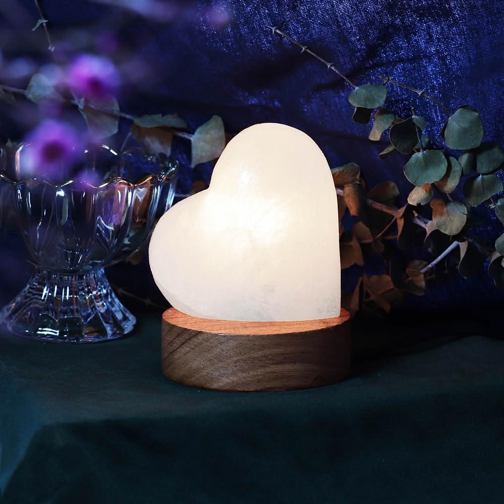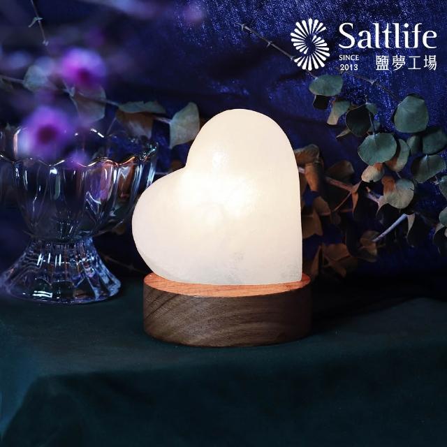 鹽夢工場暖心如光|小白愛心原木座|小型鹽燈專用開關電線