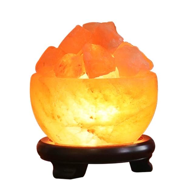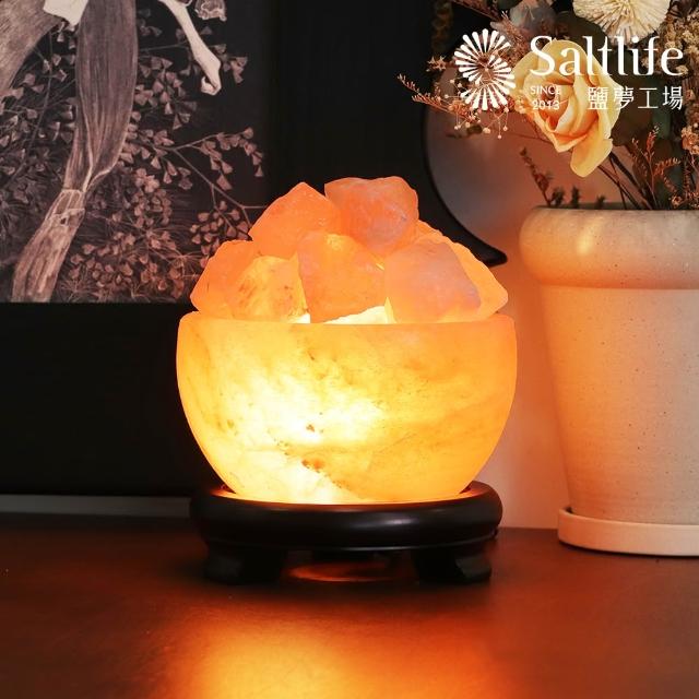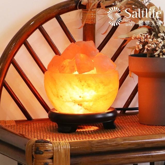 鹽夢工場財聚納福 |6吋玫瑰聚寶盆|特製底座鹽燈三段式保險絲電線