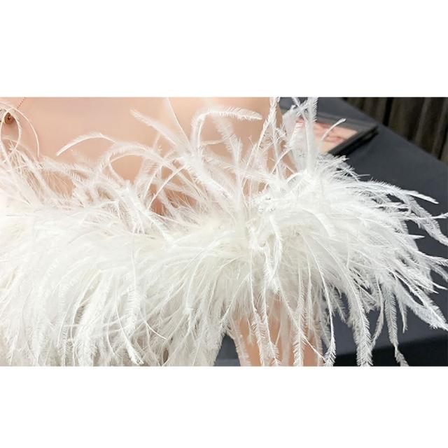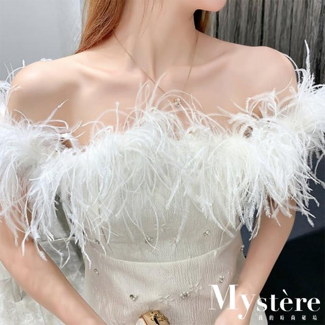 my stere 我的時尚秘境現貨商品-輕奢浮雕毛露肩釘珠水鑽洋裝(毛領露肩 水鑽釘珠 收腰顯瘦)