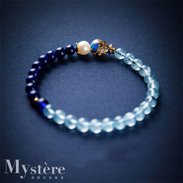 my stere 我的時尚秘境現貨-天然青金石配藍寶景泰藍珍珠手環(招貴人 癸卯招財必備款 限時發發發)