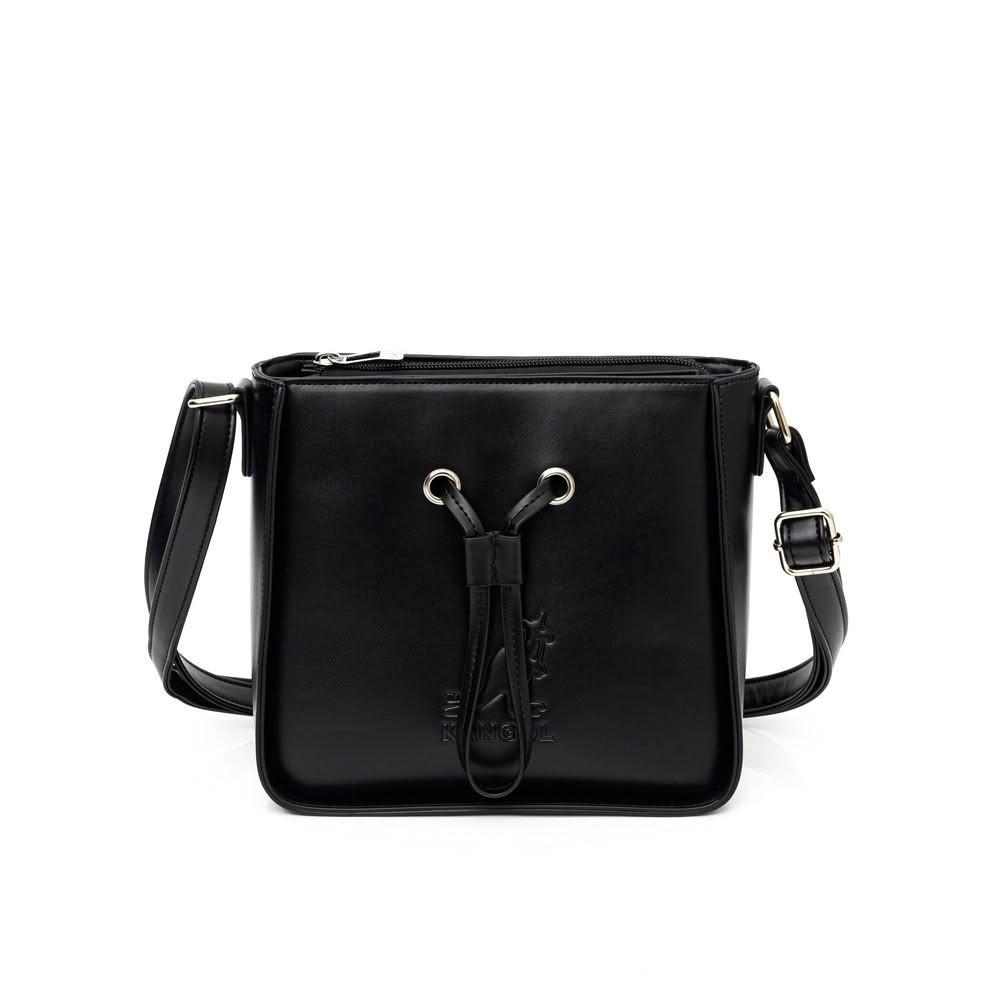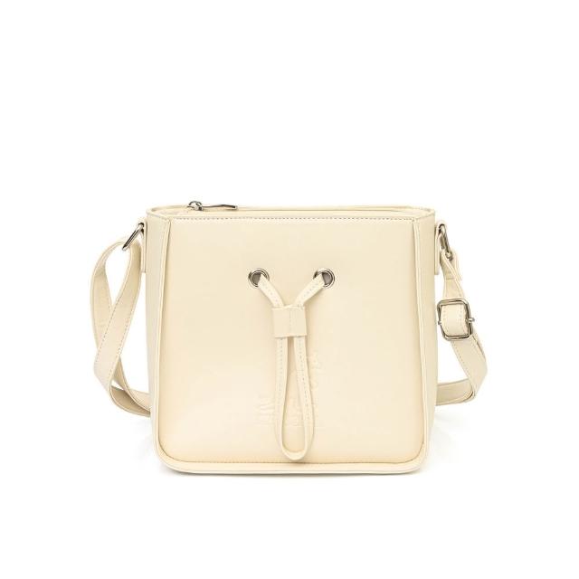 KANGOLPU方形束口包 側背包 PU包 方形包 束口包(米白/黑色)
