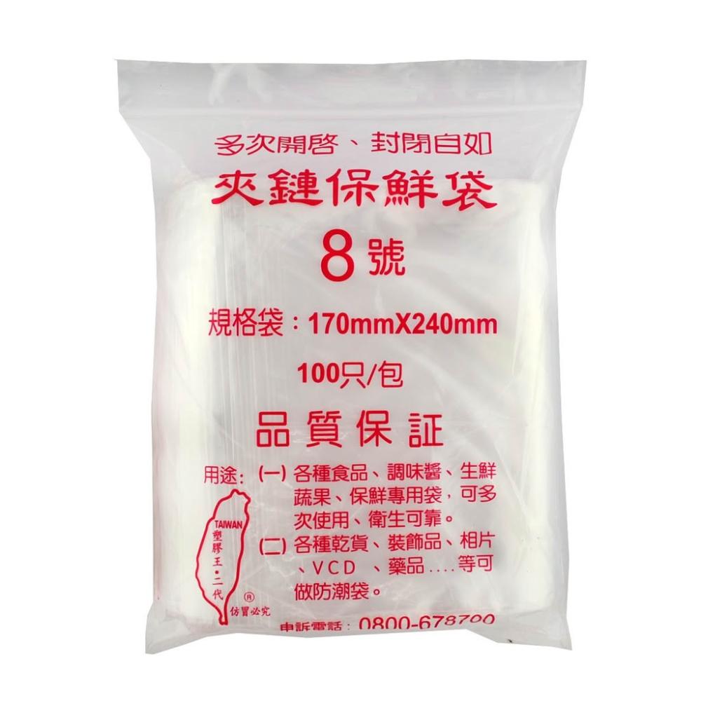 夾鏈保鮮袋 8號 170 x 240mm 台灣製 100入 夾鏈袋 保鮮袋