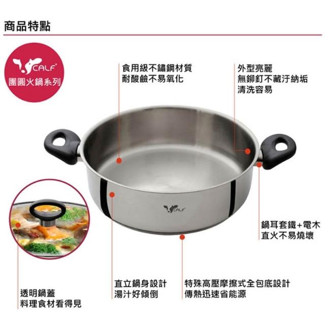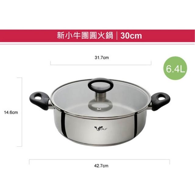 牛頭牌 新小牛團圓火鍋 30cm 6.4L 圍爐火鍋 關東煮 薑母鴨 湯鍋 麻辣鍋 不鏽鋼鍋 團圓飯 除夕火鍋 家庭火鍋