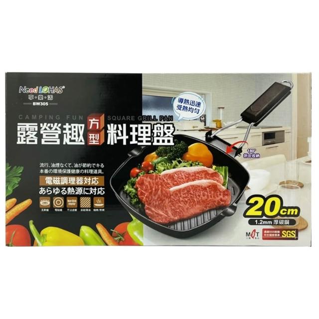露營趣方型料理盤 20cm 不沾烤盤 燒烤盤 烤肉盤 露營 煎肉 煎盤 煎鍋 BW305