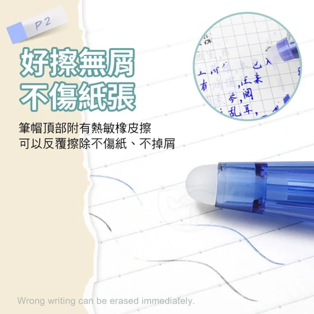 - 筆帽頂部附熱敏橡皮擦擦除