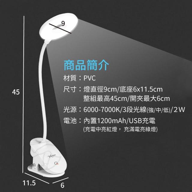 LED護眼夾燈|LED檯燈 三段調色 護眼檯燈 桌燈 閱讀燈 檯燈 居家生活 小檯燈 LED夾燈 無線檯燈