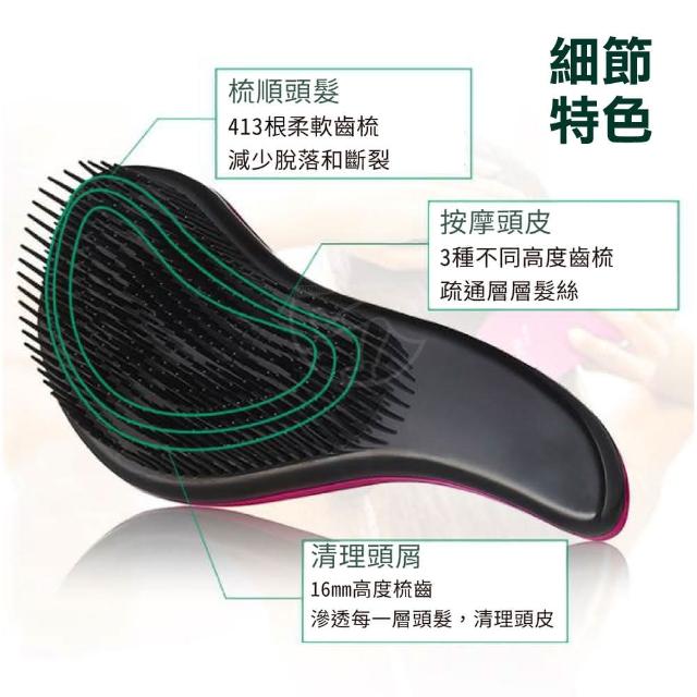 - 齒梳柔韌有彈性,減少頭髮斷裂