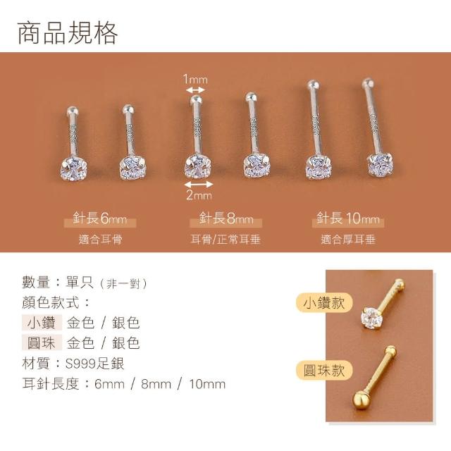 S999純銀耳釘|通體純銀 S999 銀針 養耳棒 耳骨釘 小巧耳針 銀耳環 養耳洞 耳環 耳棒 抗過敏