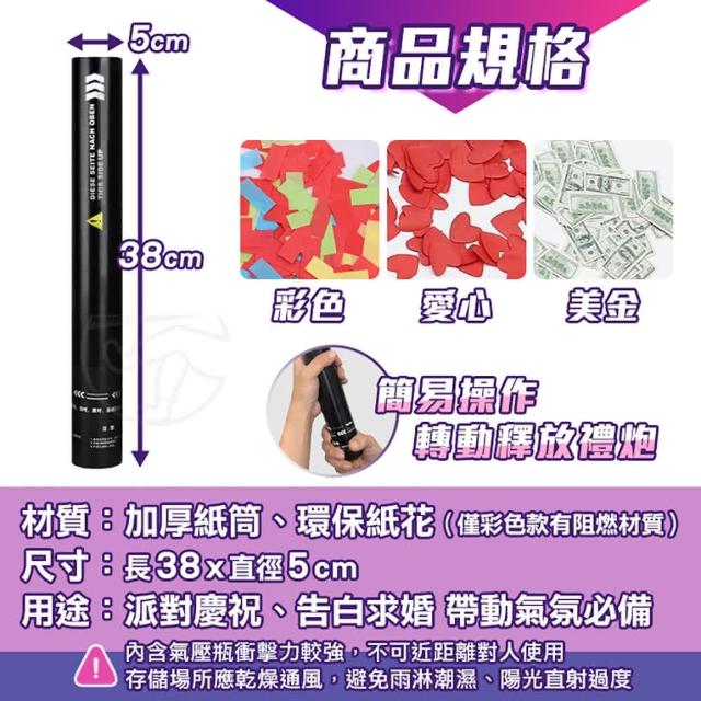 彩紙禮炮|禮花筒 手動禮炮 彩紙 愛心 美金 氛圍道具 安全拉炮 空氣炮 節慶 生日 告白求婚 慶祝禮炮 阻燃彩紙