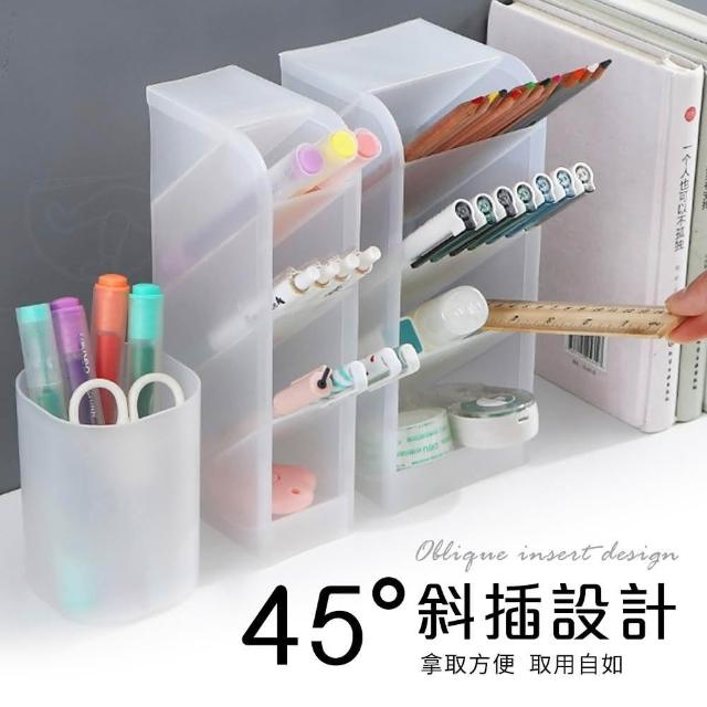 斜插式筆筒|斜插式 四格筆筒 桌面收納盒 分格置物盒 化妝刷盒 口紅收納 收納筒 辦公文具 半透明筆筒