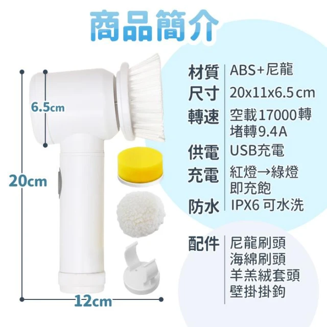多功能電動清潔刷|懶人清潔刷 多功能電動刷 充電式清潔刷 洗車刷 防水 洗碗刷 電動清潔刷 無線電動刷