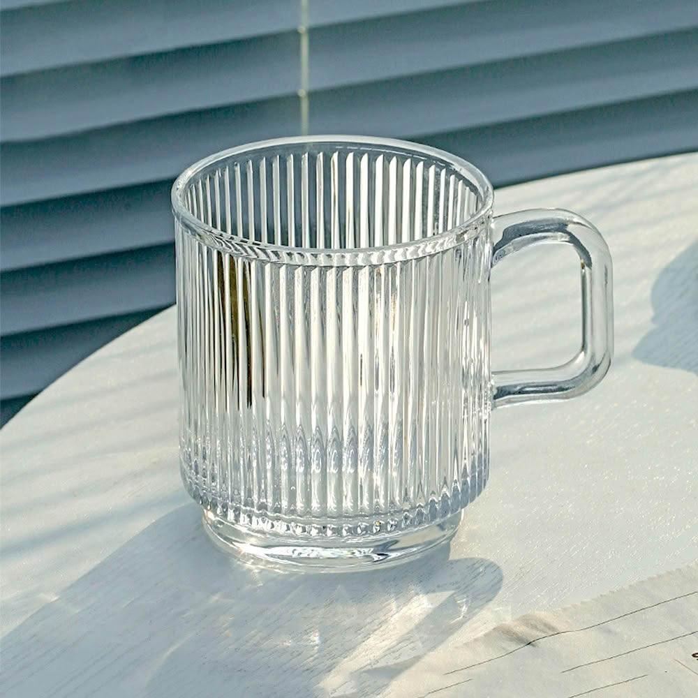 細條紋帶把手玻璃杯|手把玻璃水杯 耐熱玻璃杯 透明酒杯 玻璃馬克杯 咖啡杯 拿鐵杯 飲料杯 豎紋玻璃杯