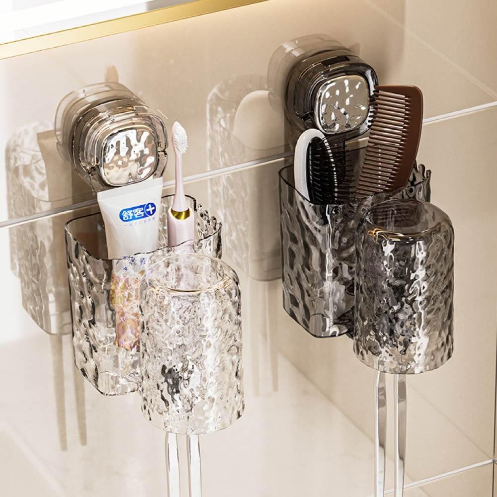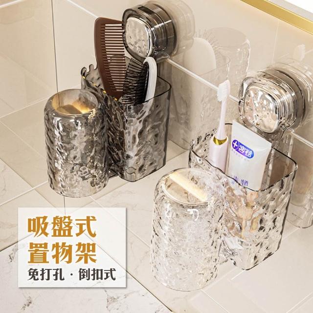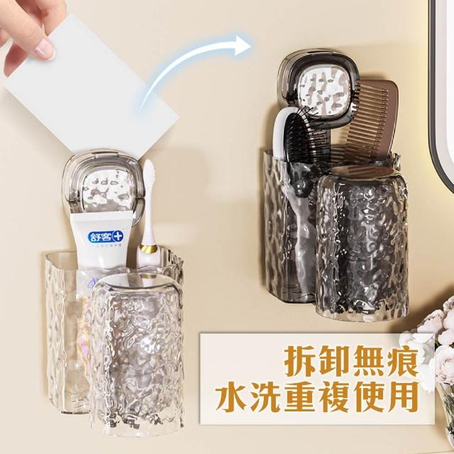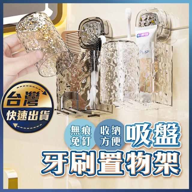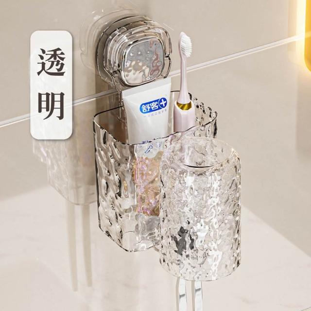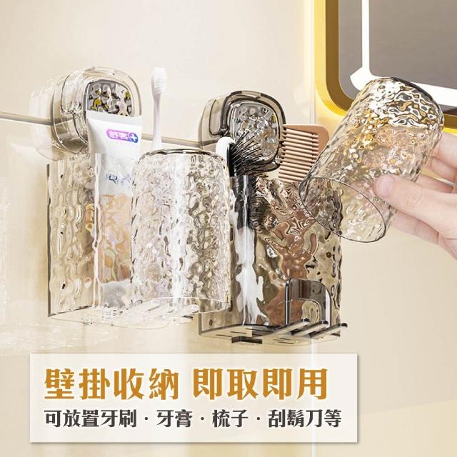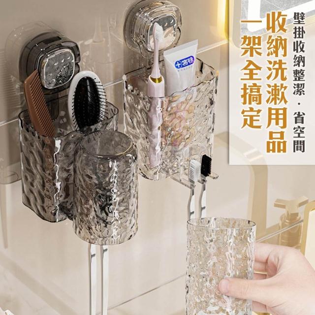 吸盤牙刷置物架|刷牙杯收納 牙刷置物架 衛生間置物架 壁掛牙刷收納架 牙刷收納架 牙刷架 冰川紋牙刷架 免打孔牙刷架