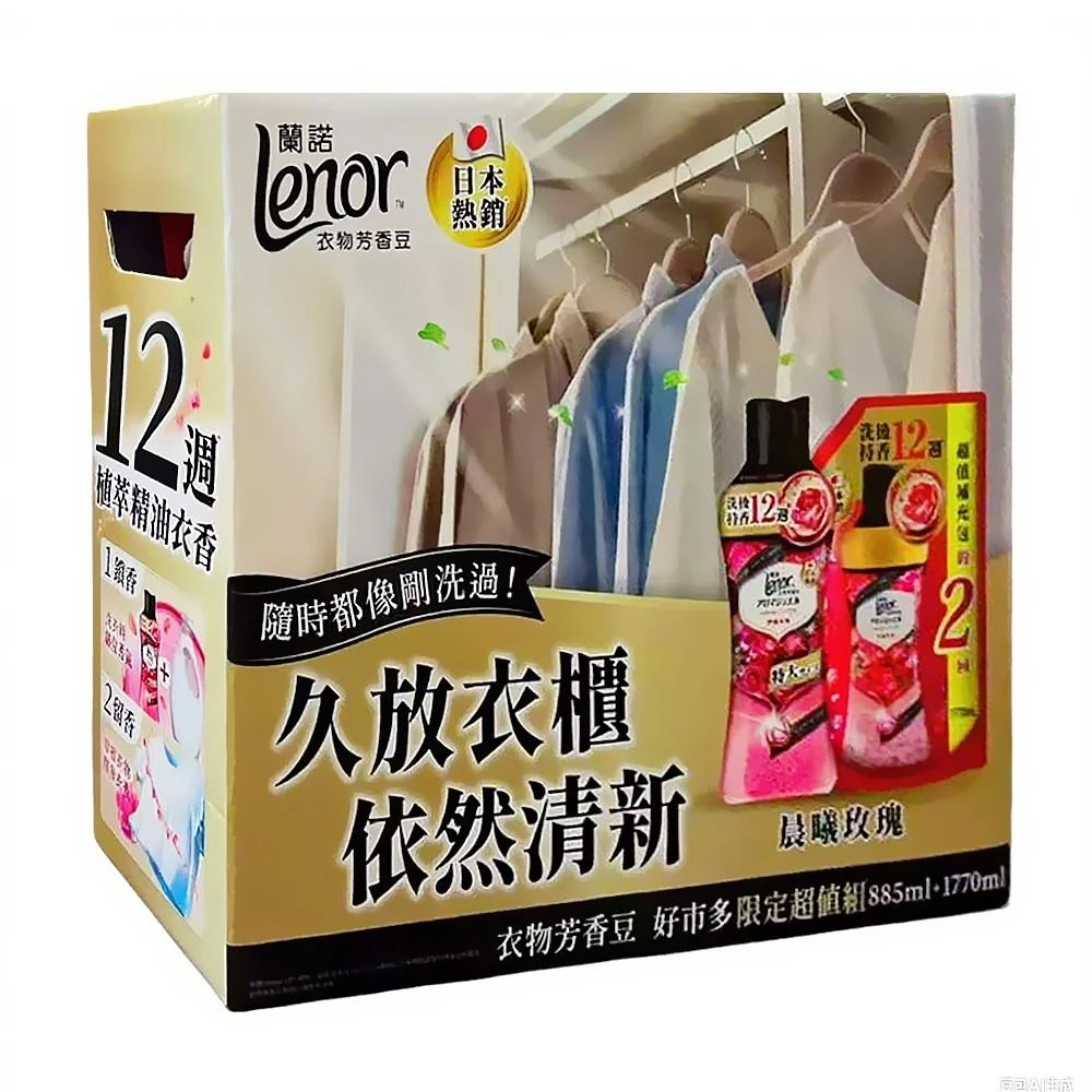 Lenor 蘭諾蘭諾 衣物芳香豆 晨曦玫瑰 885毫升 + 1770毫升補充包