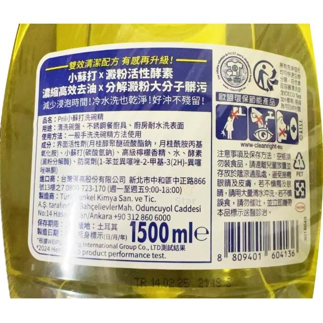Pril 淨麗Pril 小蘇打洗碗精清新檸檬香 1.5公升 X 2入
