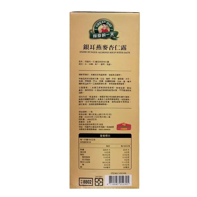得意的一天銀耳燕麥杏仁露 750公克 X 3包