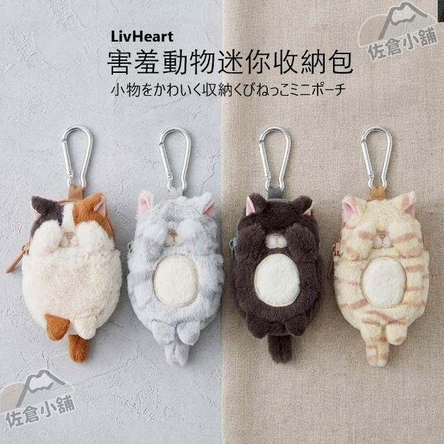 日本直送 佐倉嚴選 LivHeart 害羞動物迷你收納包 登山扣 零錢包 耳機包 鑰匙包 貓咪 絨毛娃娃 包包掛飾 禮物