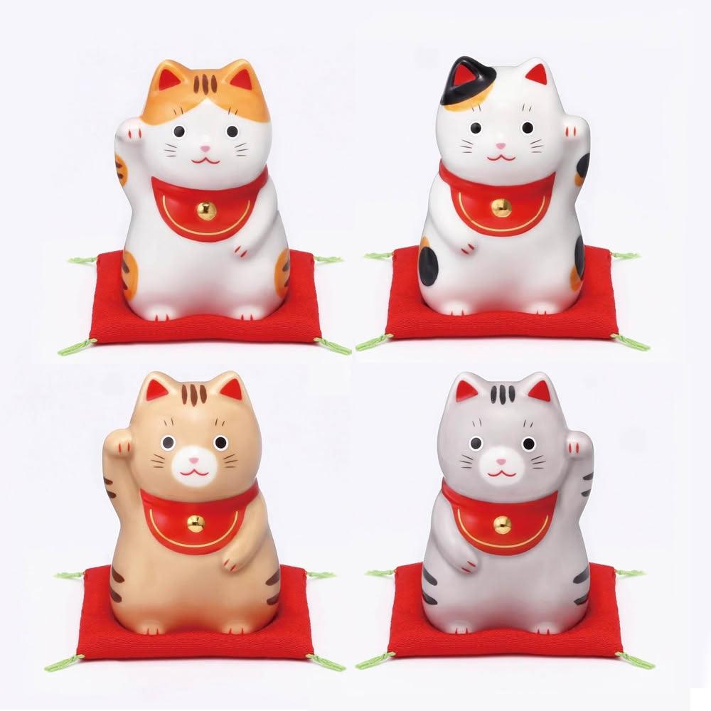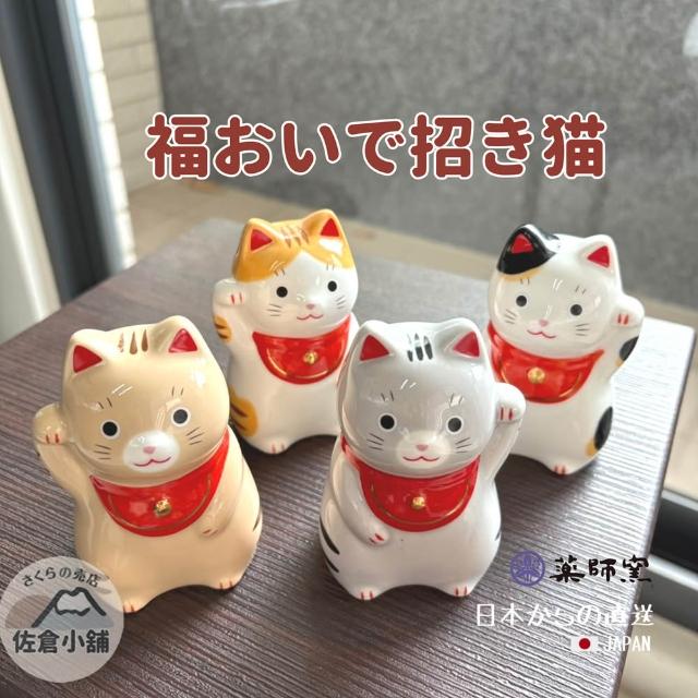 日本藥師窯日本直送 佐倉嚴選 福來招財貓 4入 陶瓷 三花 虎斑 灰貓 風水 除惡 開運 擺飾 財運 開業 公仔禮物