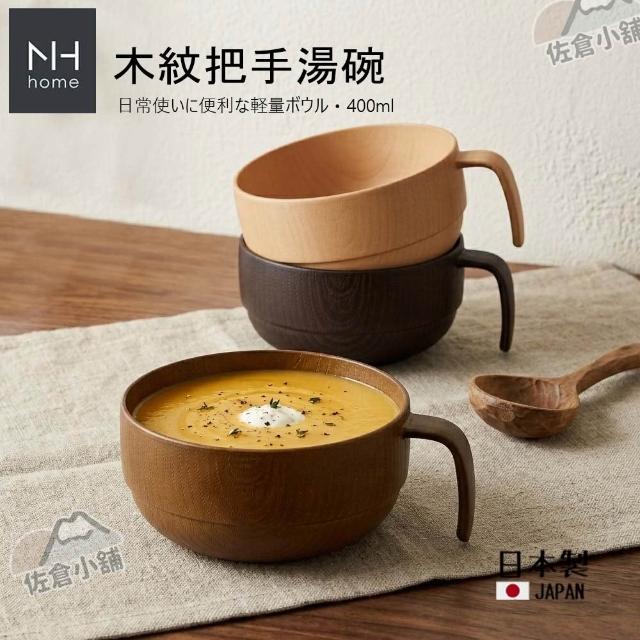 日本製 佐倉嚴選 NH home 輕量 木紋把手湯碗 400ml 輕量 樹脂餐碗 湯杯 防摔耐用 露營野餐 烤肉餐具