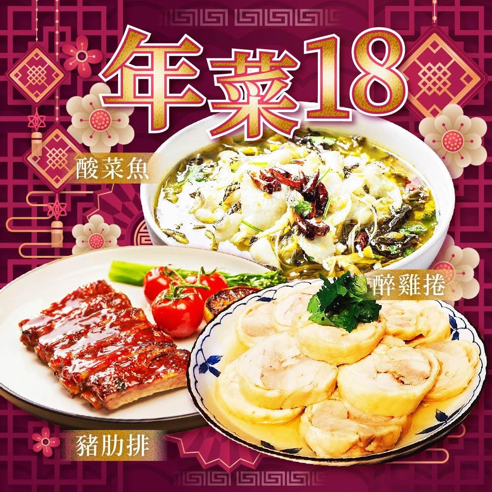 上野物產(預購) 18 年菜組(酸菜魚+桂花蜜汁豬肋排+紹興醉雞卷)