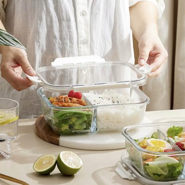 Easygoo 輕鬆長方三格玻璃保鮮盒1L(密封碗)16x21x6.8cm