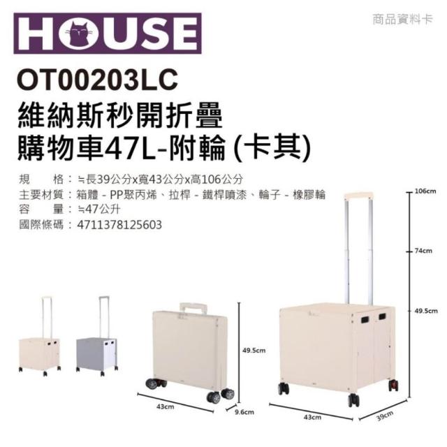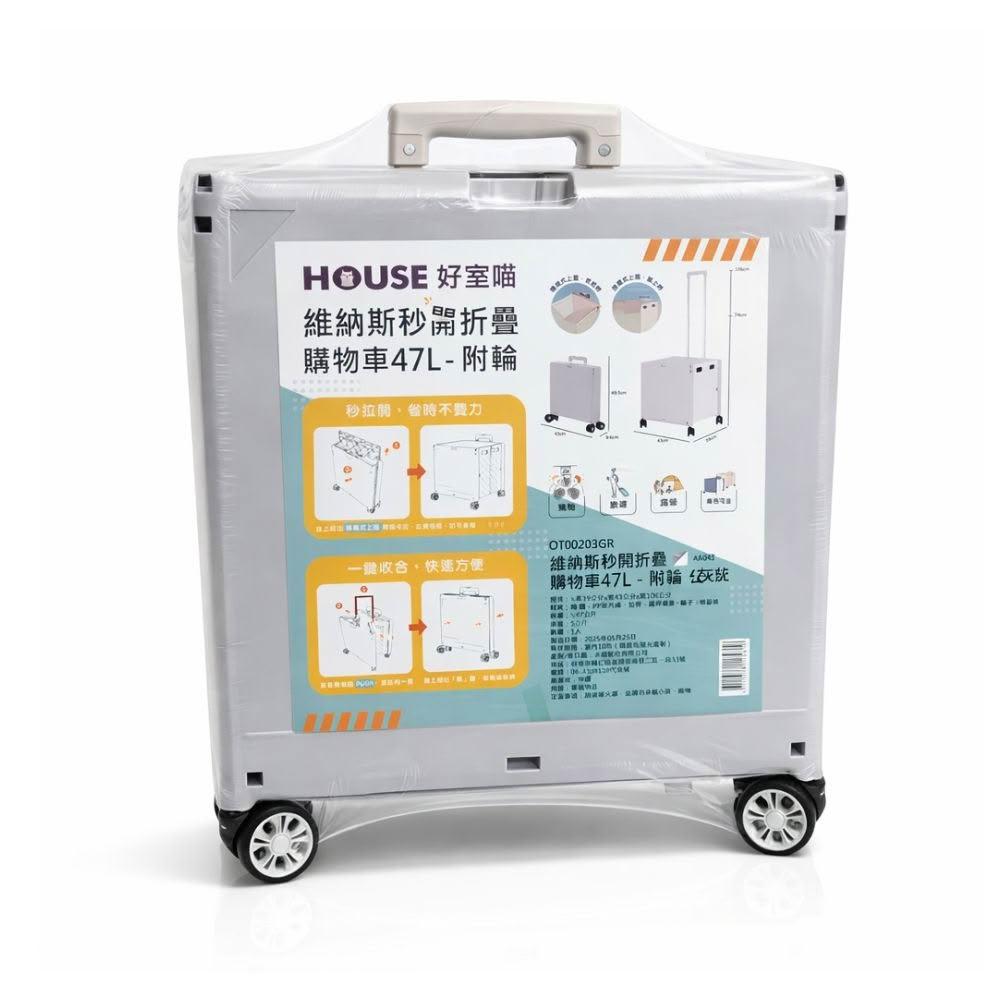 HOUSE 好室喵 HOUSE 維納斯秒開折疊購物車47L|附輪 可拉式拉桿 折疊收納 手提推車 買菜車 行李車【輕鬆購五金百貨】
