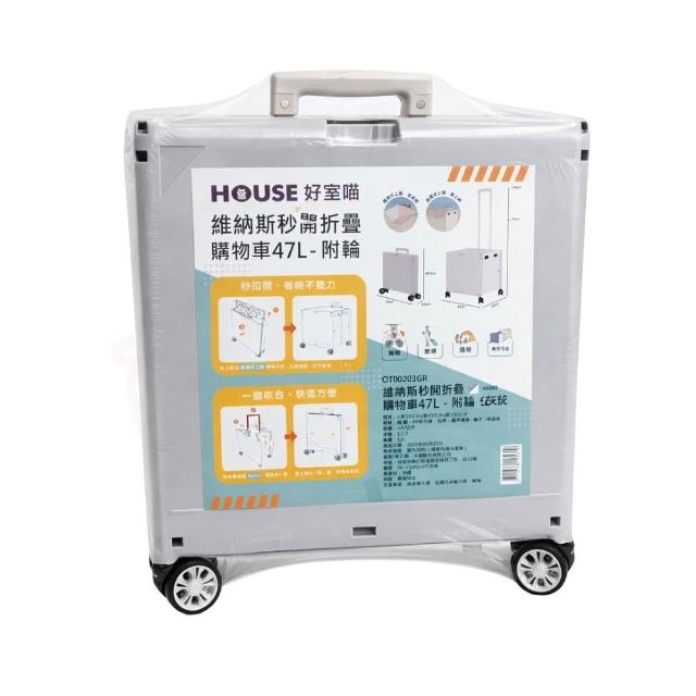 HOUSE 好室喵 HOUSE 維納斯秒開折疊購物車47L|附輪 可拉式拉桿 折疊收納 手提推車 買菜車 行李車【輕鬆購五金百貨】