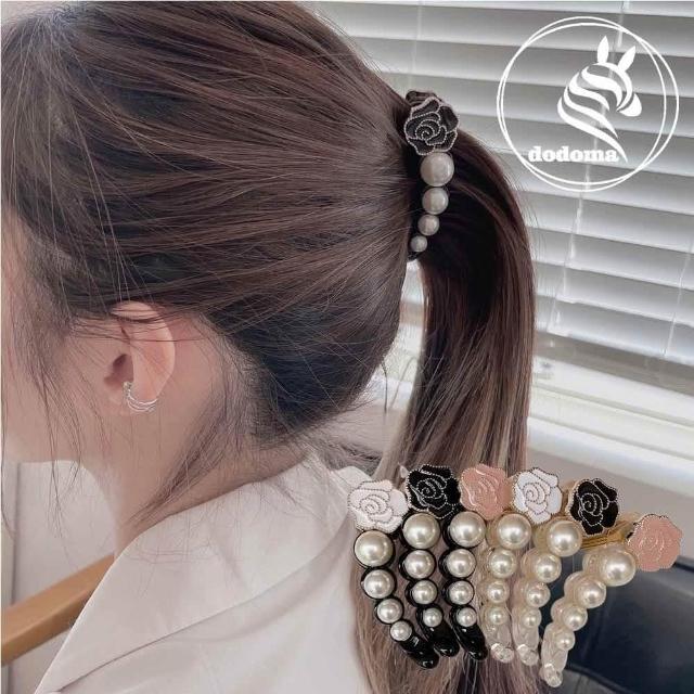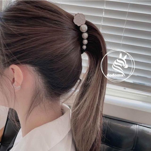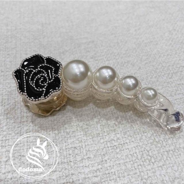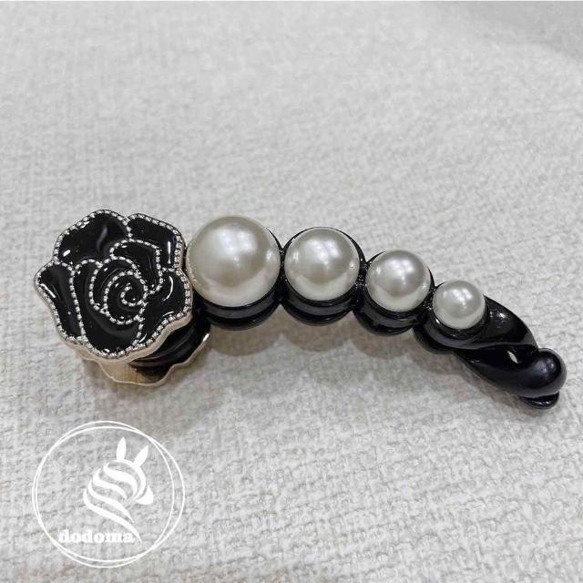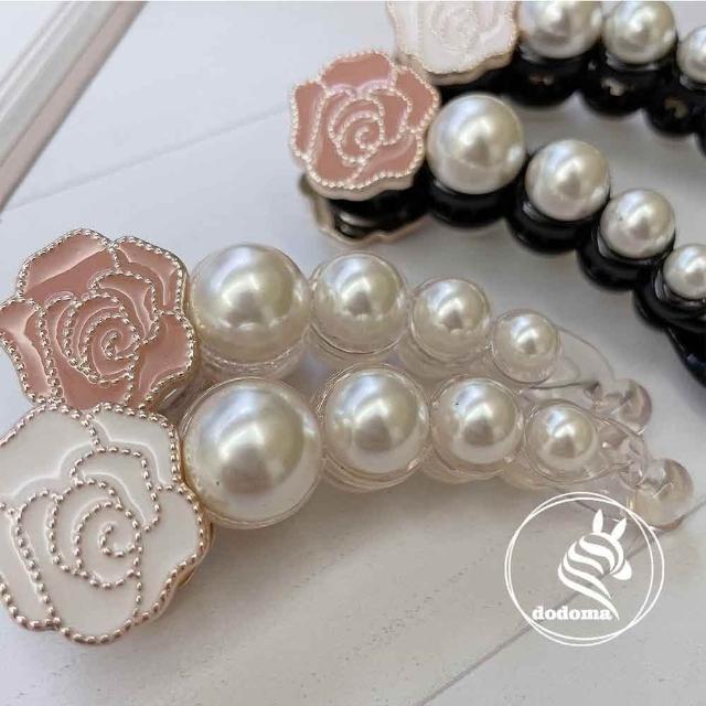dodoma韓國製 花朵琺瑯香蕉夾 正韓 質感珍珠相交夾(髮量少馬尾髮夾)
