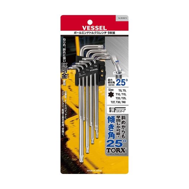 日本VESSEL 梅花星型L形扳手9件組(球頭型 8509BTX)