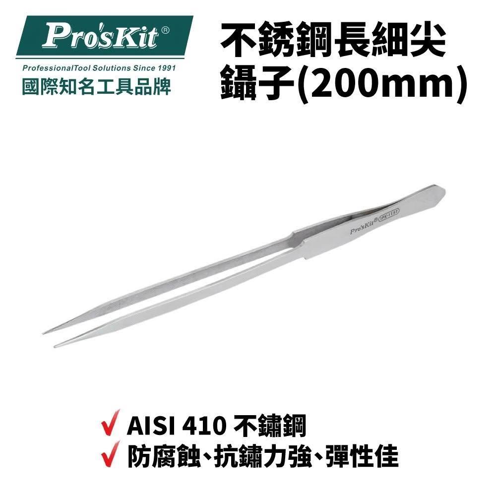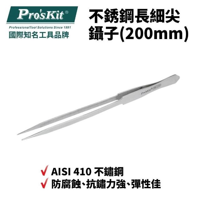 Pro'sKit 寶工 不銹鋼長細尖鑷子(200mm)| 1PK-115T