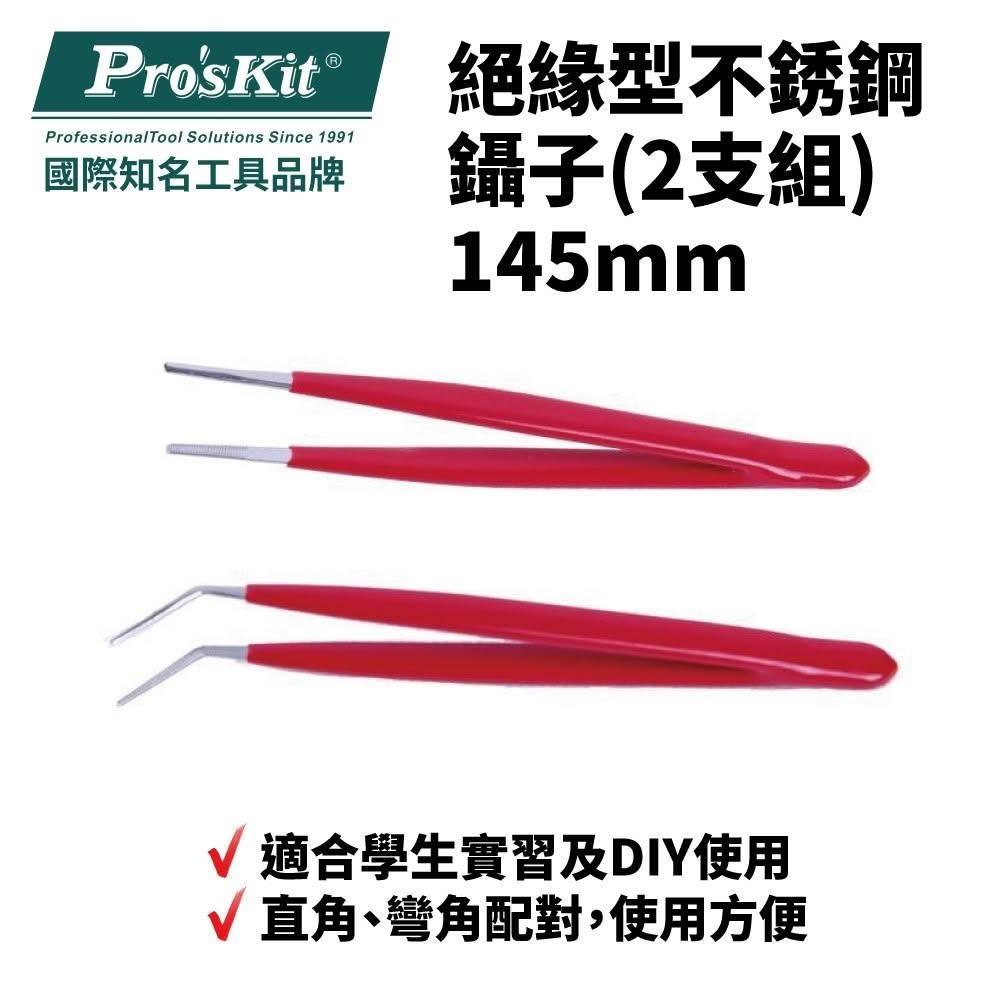Pro'sKit 寶工 絕緣型不銹鋼鑷子2支組_145mm| 908-T301