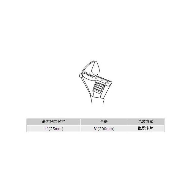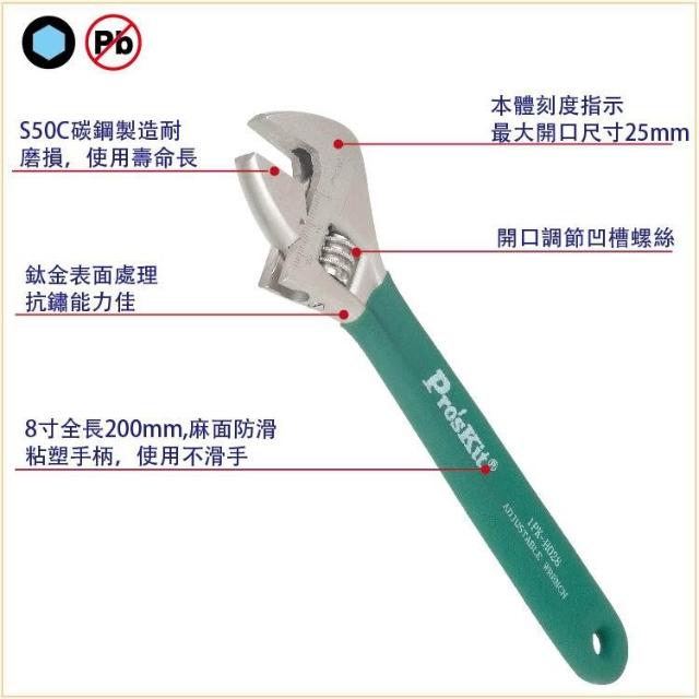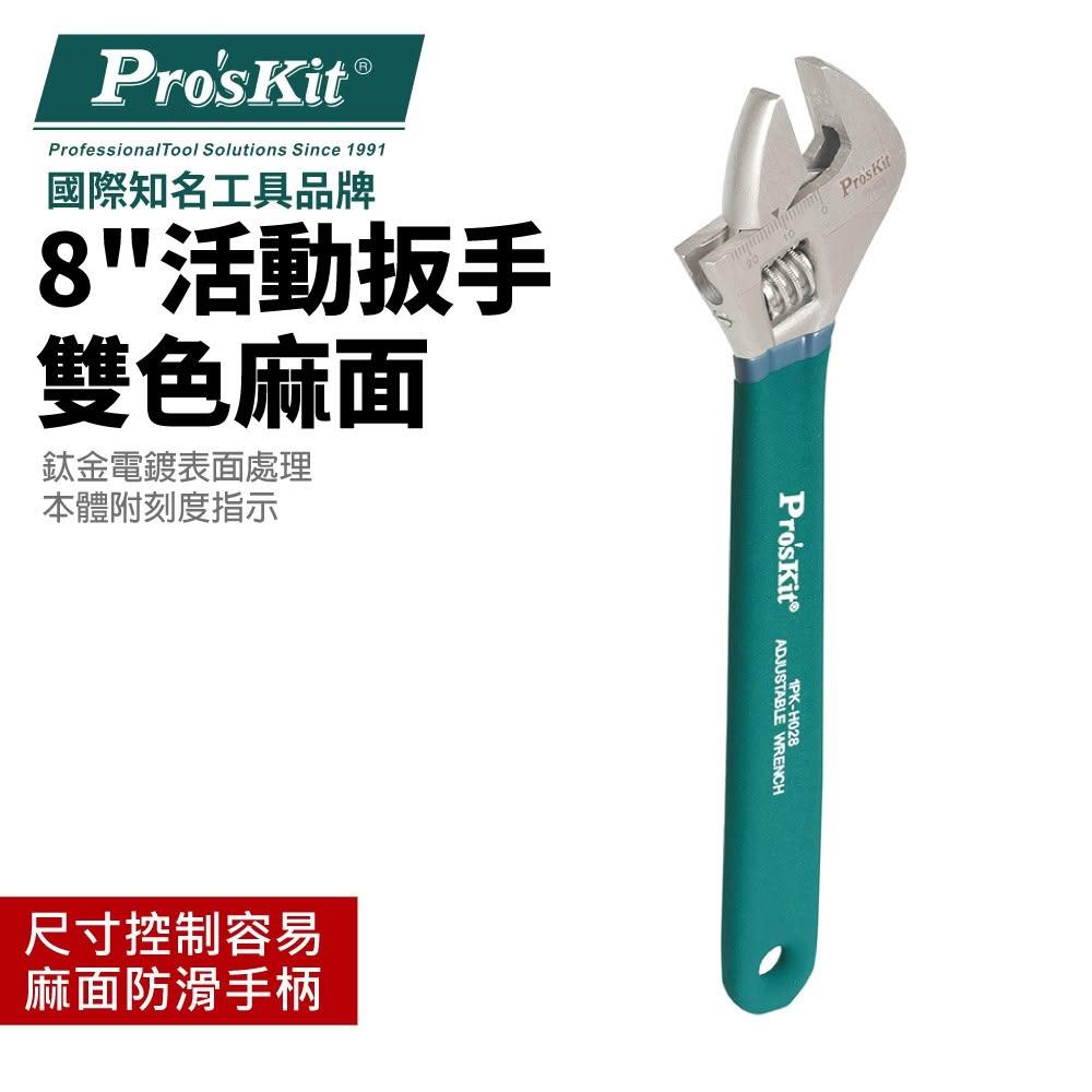 Pro'sKit 寶工 1PK-H028 八吋 鈦金防滑活動扳手 本體附刻度指示 尺寸控制容易 麻面防滑手柄 扳手