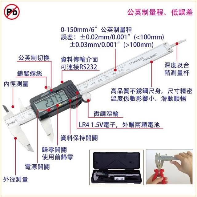 Pro'sKit 寶工 數位型游標卡尺_150mm| PD-151