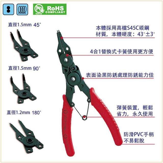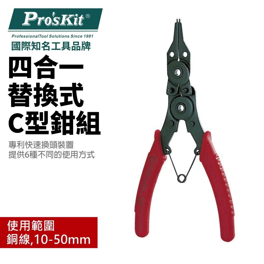 Pro'sKit 寶工 4合1替換式C型鉗組(附四個頭) | 8PK-249