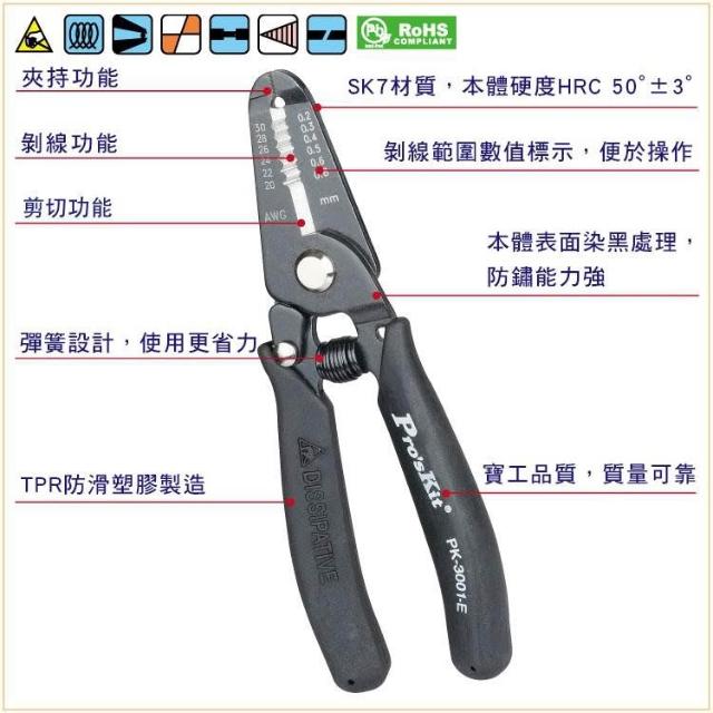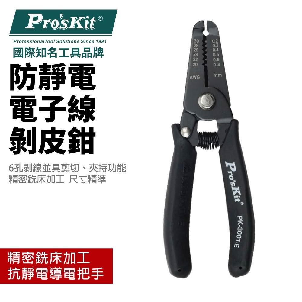 Pro'sKit 寶工 防靜電電子線剝皮鉗 導電把手 6孔剝線並具剪切 夾持功能 鉗子| 1PK-3001E