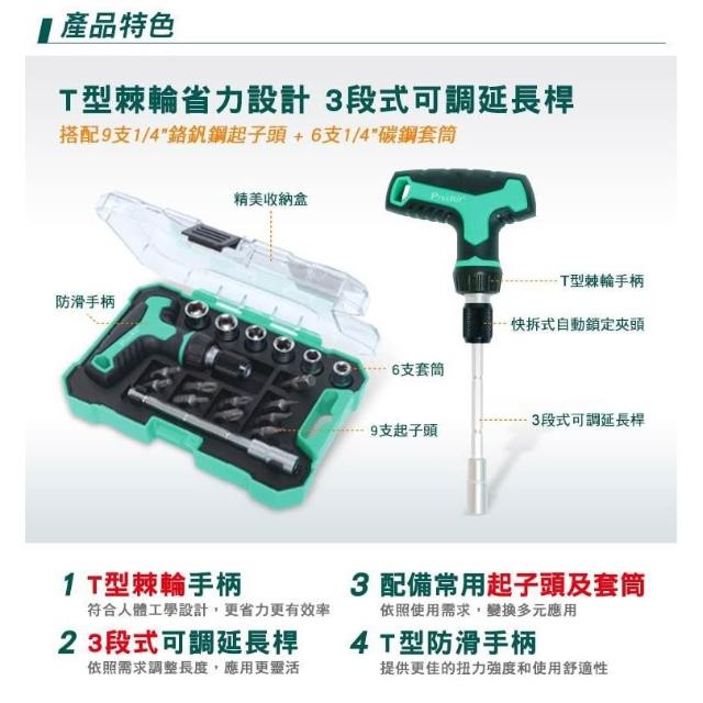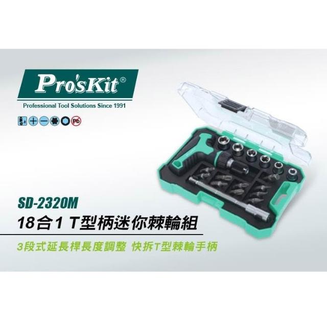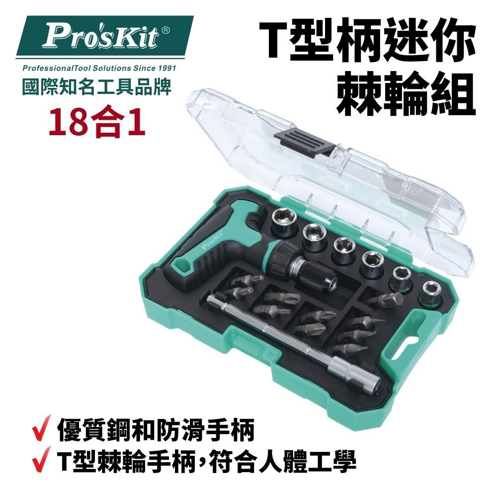 Pro'sKit 寶工 T型柄18合1 迷你棘輪組 防滑手柄 T型棘輪手柄 套裝工具組| SD-2320M