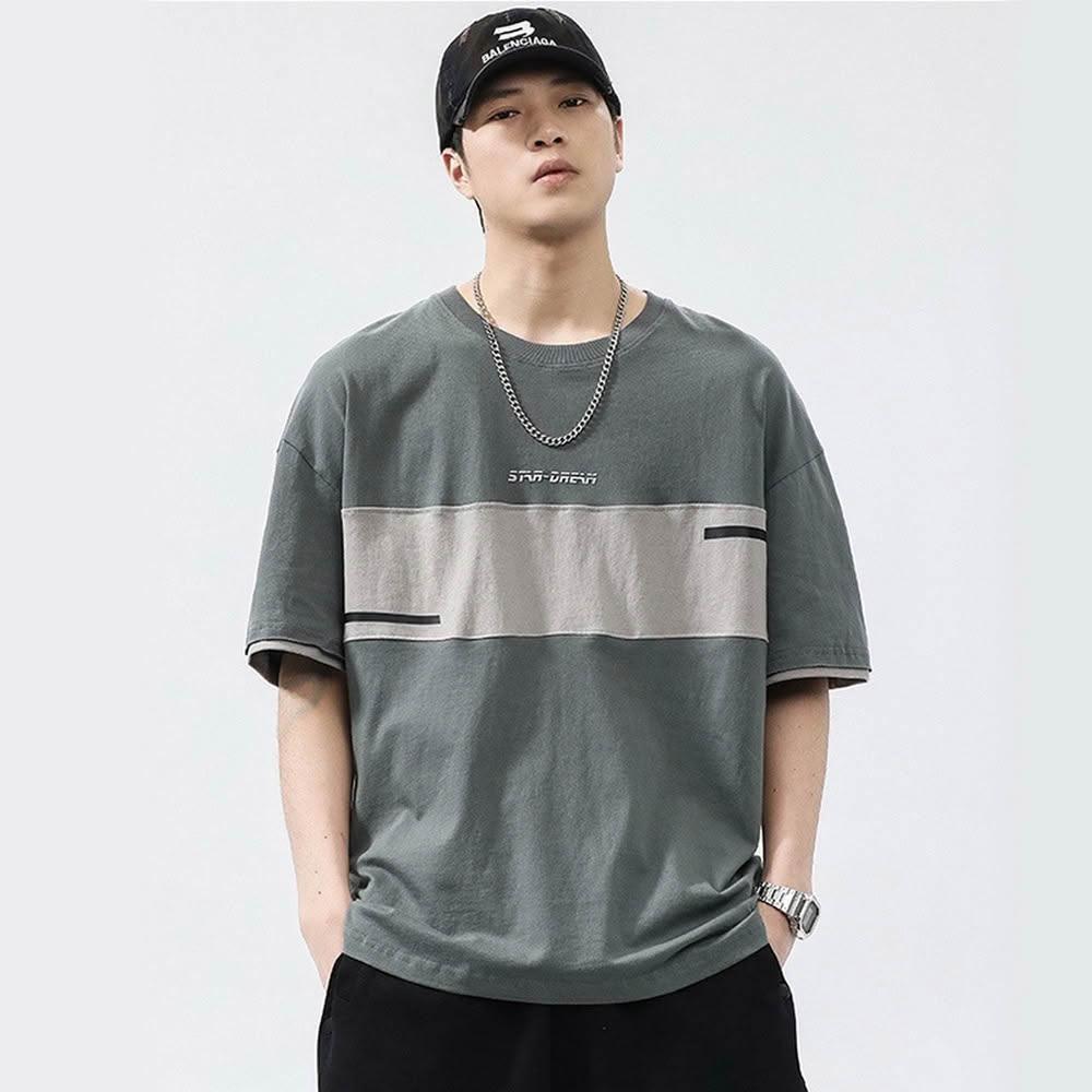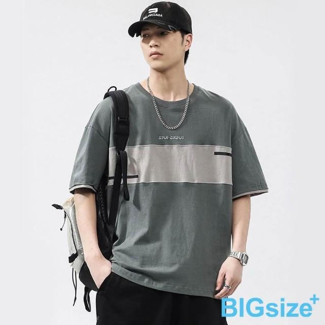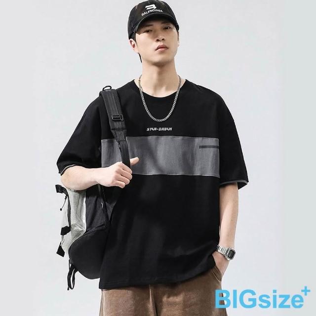 B+ 大尺碼專家現貨-大尺碼-潮流 重磅 拼接 落肩 T恤 (0201068)