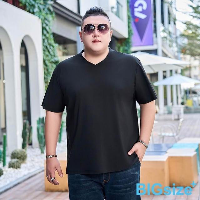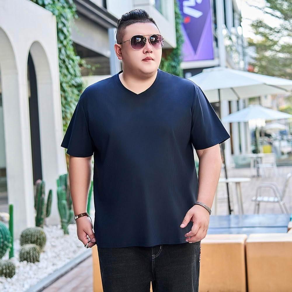 B+ 大尺碼專家現貨-大尺碼-涼爽 冰絲 涼感 V領 T恤 (0201078)