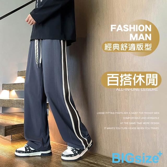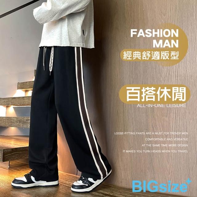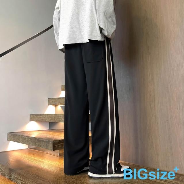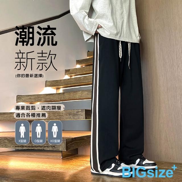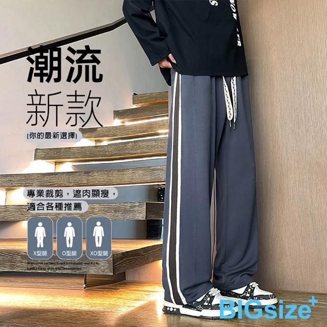 B+ 大尺碼專家現貨-大尺碼-直筒 寬腿 平口 運動褲-黑/深灰-0204245