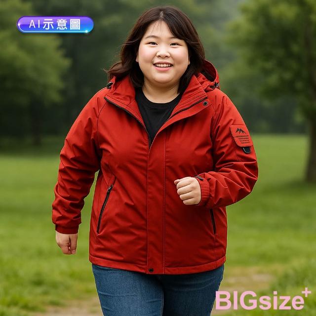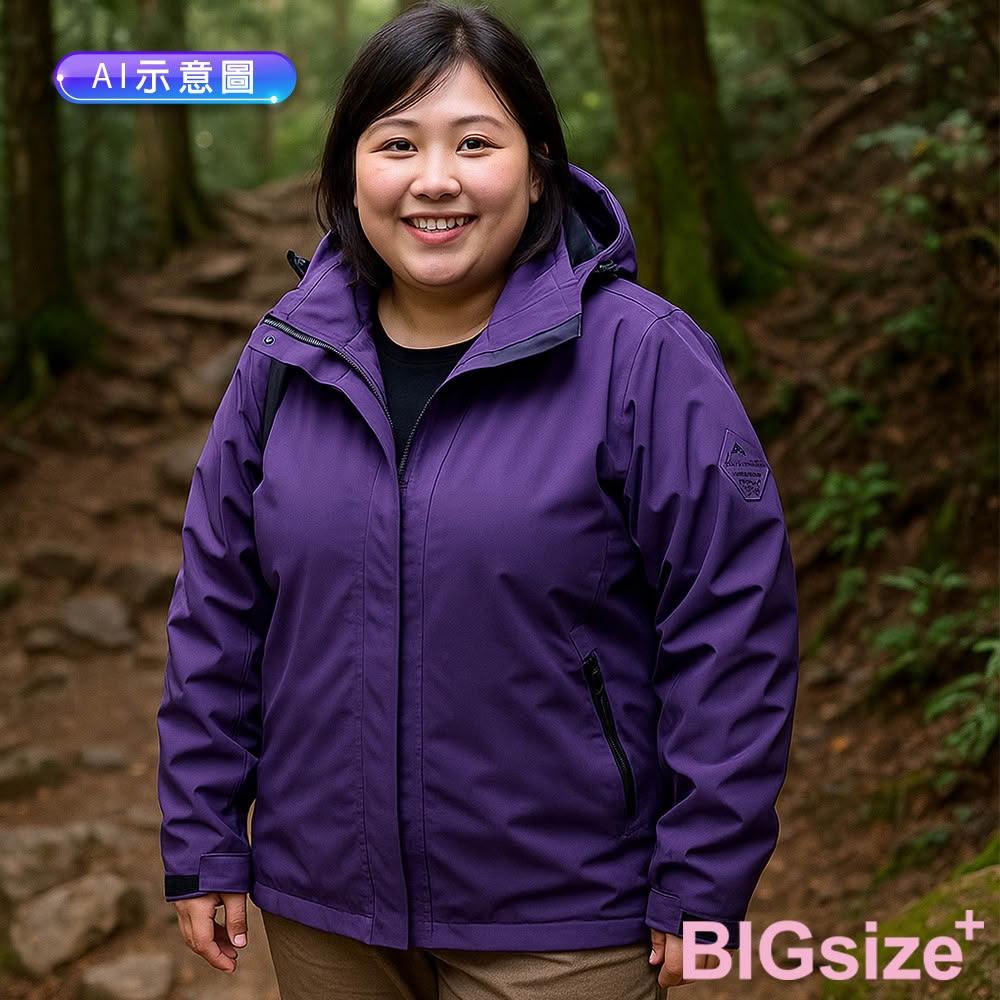 B+ 大尺碼專家現貨-大尺碼-女款 衝鋒衣 石墨烯 三合一 連帽 機能外套-黑/紅/深紫-0108619