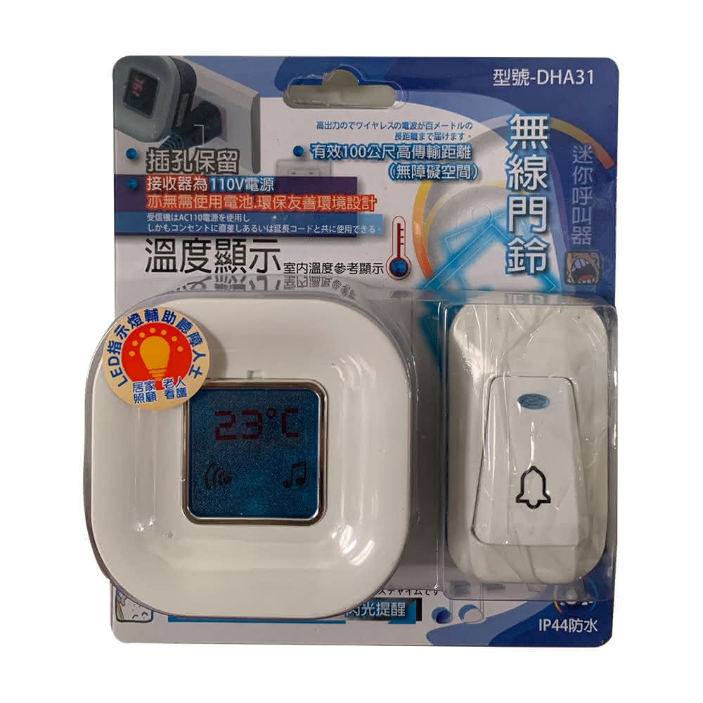 鉅豐光電DHA31 台灣阿福溫度型無線門鈴 老人長照 居家照顧 呼叫門鈴(免用電池 聽障人士也適用)