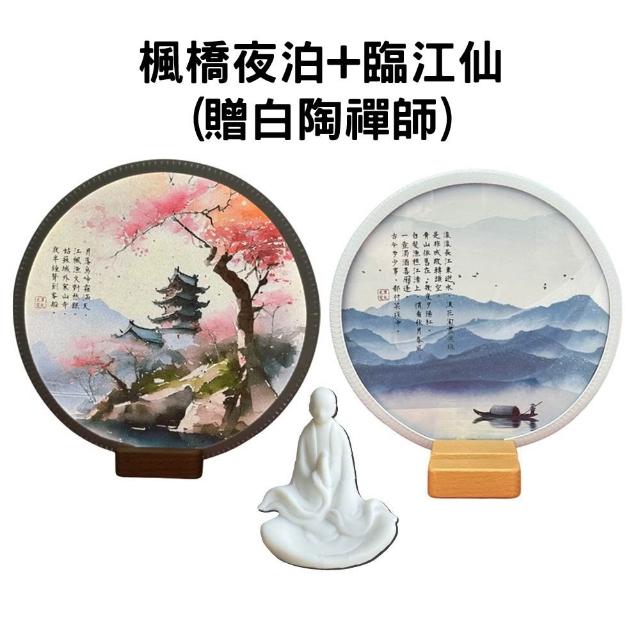 20cm 情境小夜燈 含白陶坐禪 靜心小物 雙面相框 夜燈(裝飾品 藝術品 家庭裝飾)