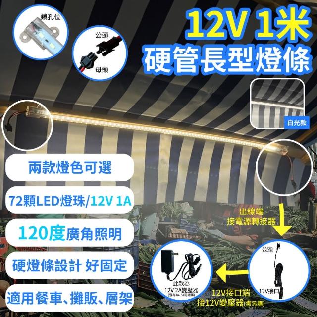 12V 硬管燈條 長型燈條 露營燈 裝飾燈 餐車 攤販(白光 黃光 暖白光 12W LED燈 燈管)