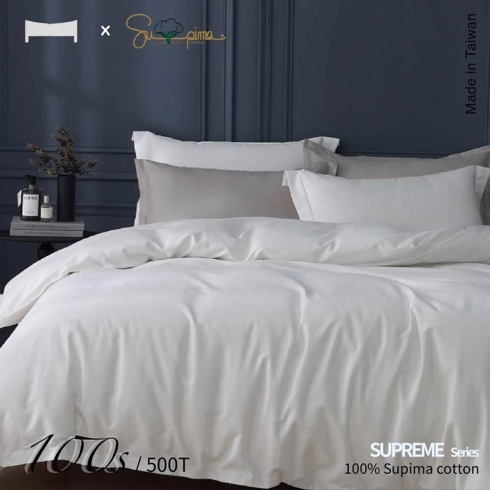 Urban Nest500織 SUPIMA匹馬棉 薄被套床包枕套組-標準雙人四件組 (琉璃白)
