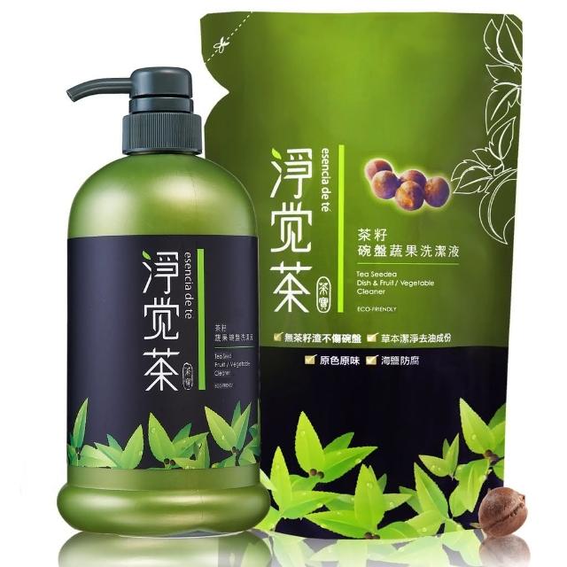 VEGUE 唯素主義茶寶 淨覺茶居家清潔 - 茶籽蔬果碗盤洗潔液罐裝800ml與環保補充包袋裝700ml(全植物製)